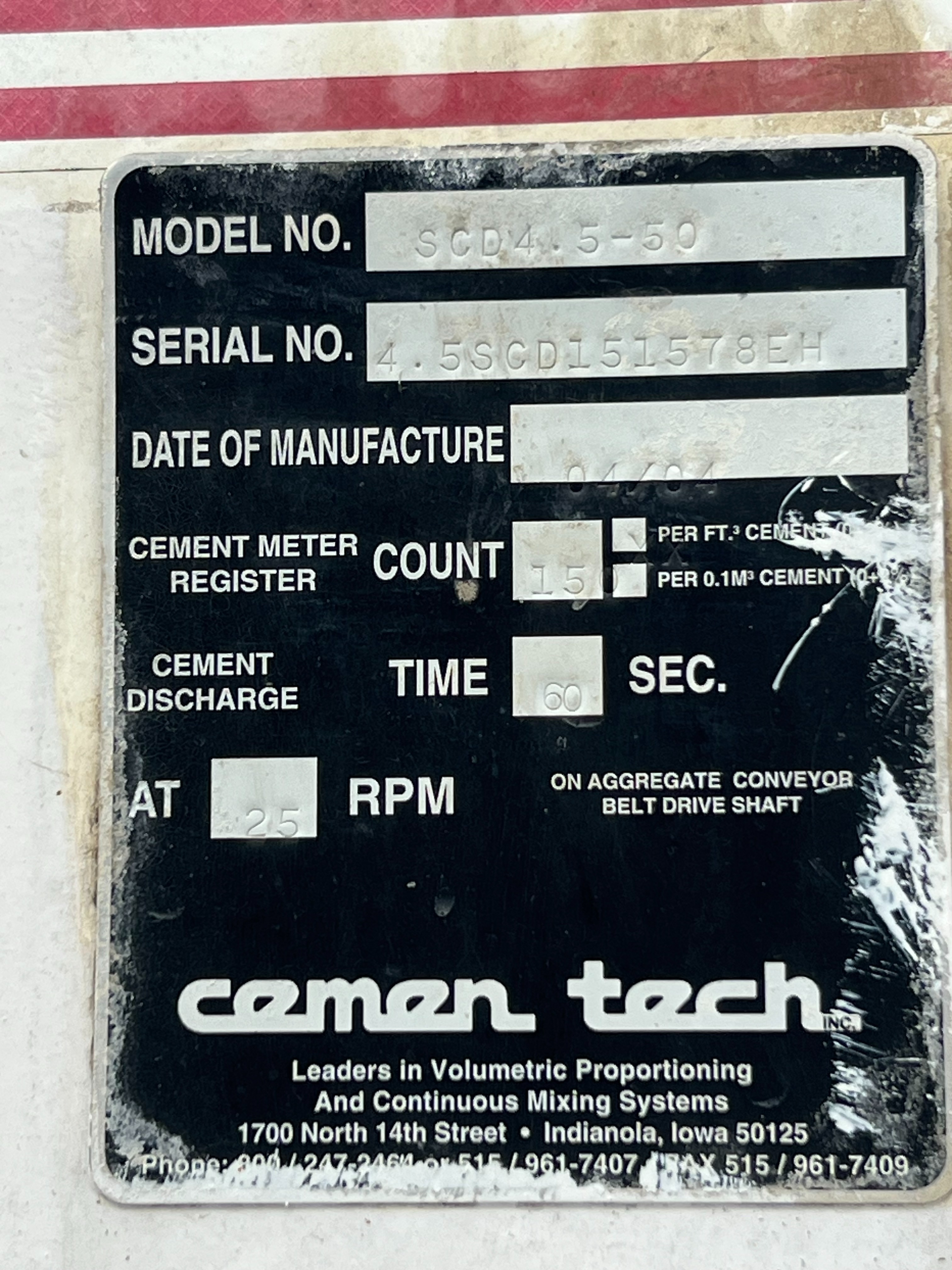 • 50 cu. ft. cement bin with dual auger feed system allows you to pour 4.5 cu. yd. of concrete without running out of cement.