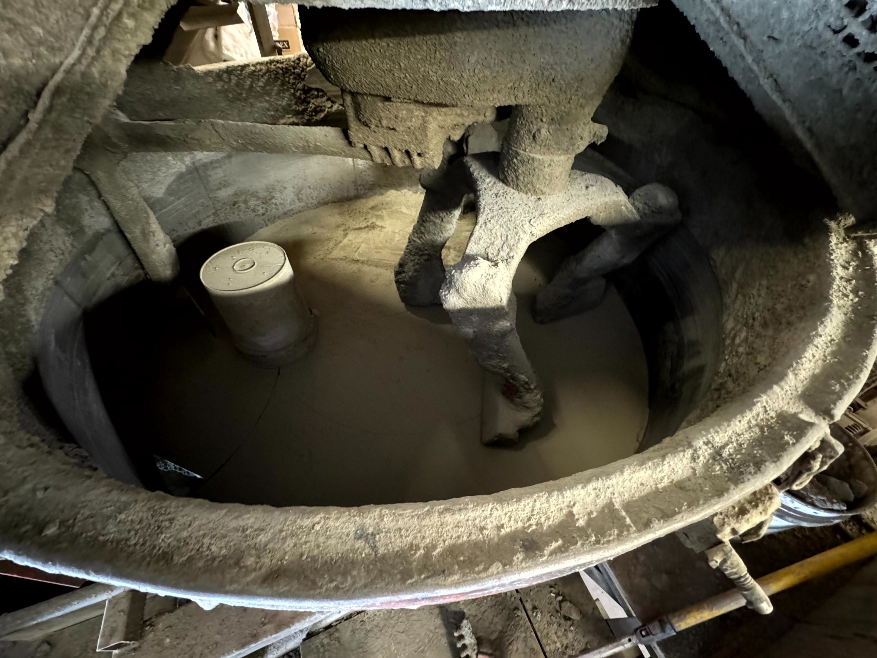 1 yard to 1.5 yard Sicoma pan type mixer (approx 2010) with cement auger