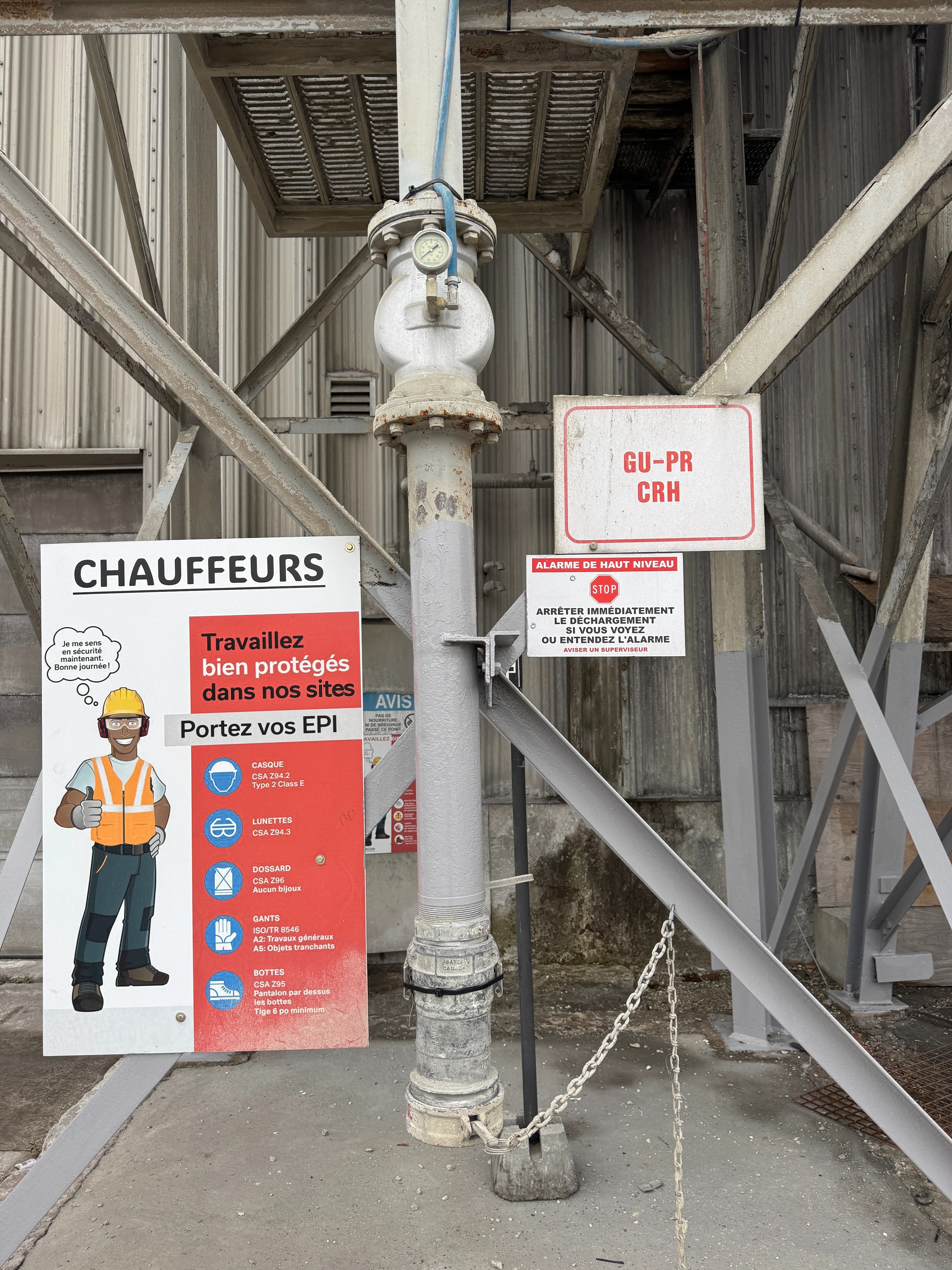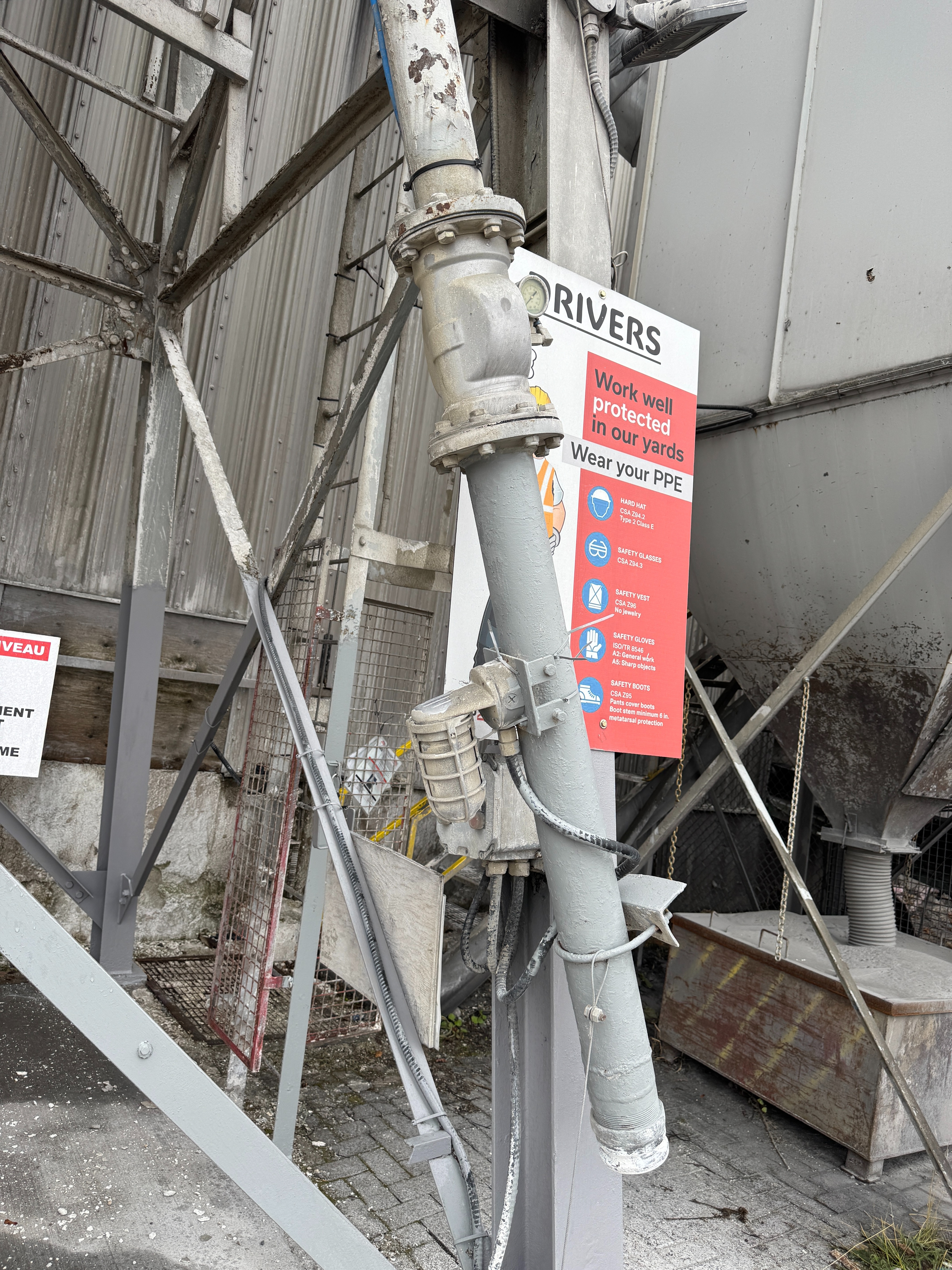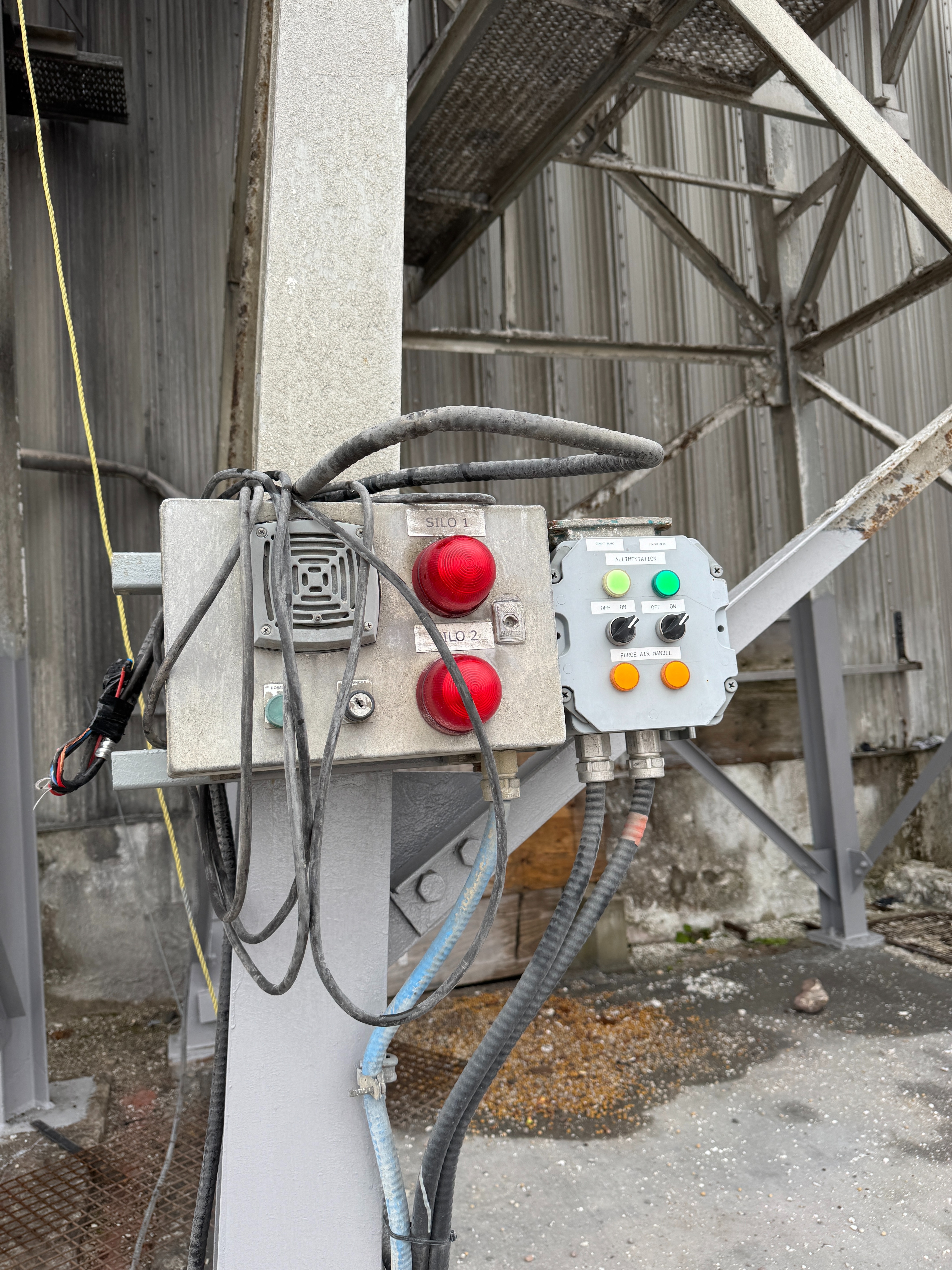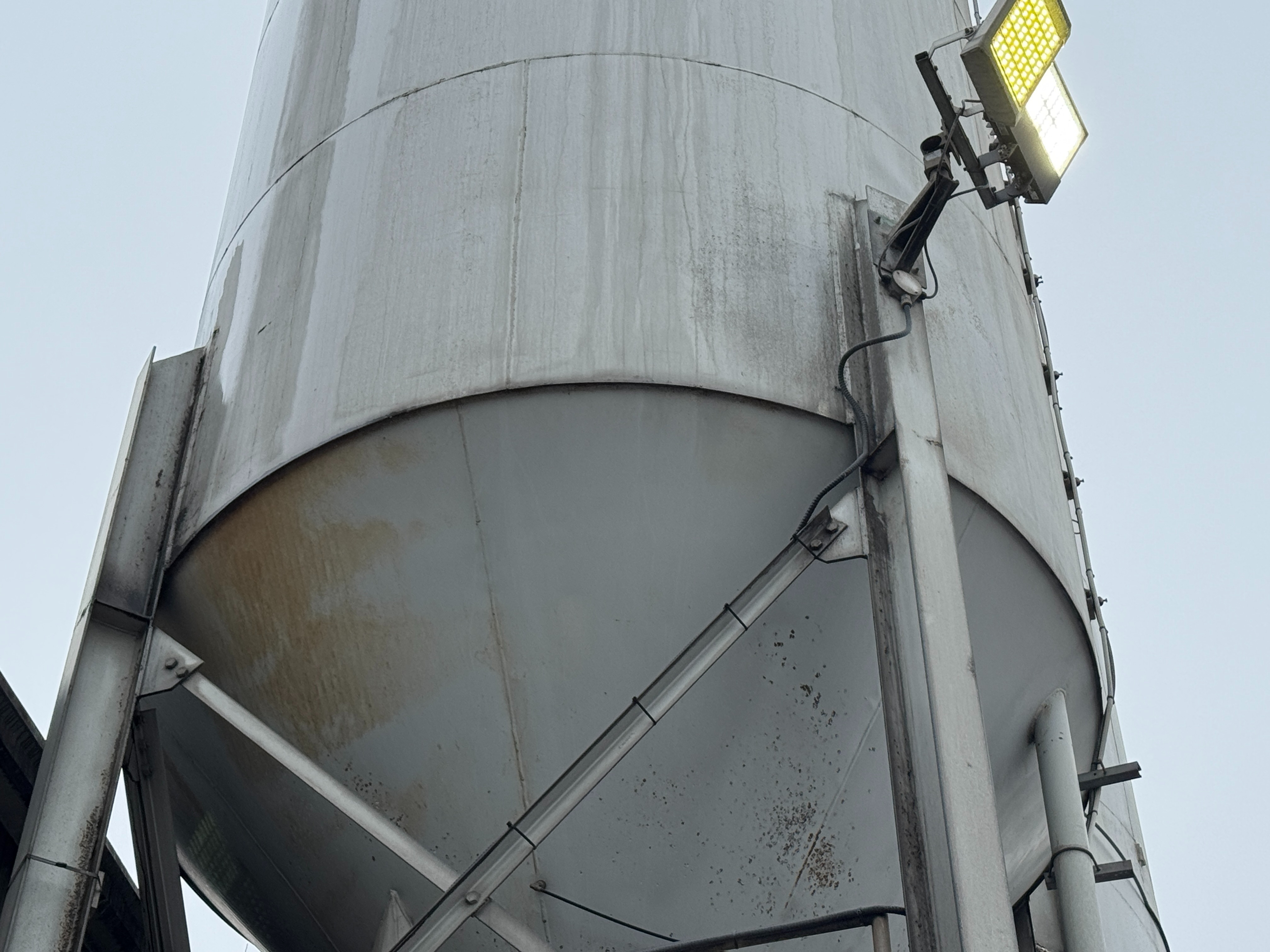 Includes ladders, guardrails, cement augers, cement loading pipes and a dust collector on top of each silo